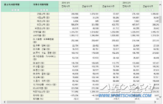1분위 가구의 낙폭이 가장 컸고 2분위(하위 10∼20%)와 3분위(하위 20∼30%)는 같은 기간 각각 2.5%와 1.0% 떨어진 것으로 나타났다. 나머지 4∼10분위 구간은 모두 늘었다.