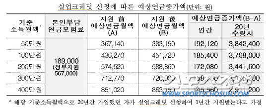 실업크레딧을 신청하면 소득이 없는 기간 동안 국가가 보험료의 4분의 3을 지원해 준다. 신청자는 이를 통해 보험금 부담도 줄고 납입기간도 연장할 수 있다.