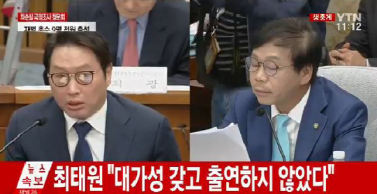 최태원 회장은 6일 오전 10시부터 서울 여의도 국회 본청에서 열린 '최순실 국정 농단 진상규명' 국정조사 특위 청문회에서 최교일 새누리당 의원의 "K스포츠재단의 추가지원 요청을 왜 거절했냐"는 질문에 이같이 답했다.