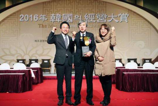 NS홈쇼핑이 '2016 한국의 경영대상'에서 민간기업 최초로 동반성장부문 최우수상을 받았다.