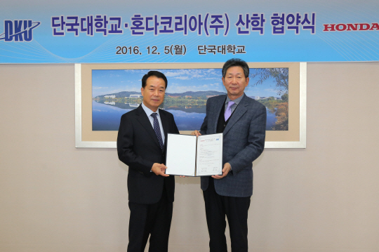 혼다코리아는 국내 자동차 산업의 발전과 전문인력 양성을 위해 단국대학교와 산학협력 협약(MOU)을 체결하고 하이브리드 엔진과 가솔린 엔진을 기증했다고 6일 밝혔다.