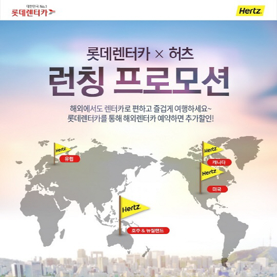 롯데렌터카는 글로벌 렌터카 브랜드 허츠(Hertz)와 함께 실시간 해외렌터카 예약서비스를 한다.