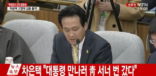 차은택은 '2014년 12월 이전에 대통령 몇번 만났나'라는 질문에 "행사때도 슌었고, 보고를 위해 뵈었다"고 말했고, 안민석 의원은 "당시 그 보고를 지켜보던 담당자는 증인과 대통령이 아주 친해보이더라라고 말했다. 두번 만났는데 그렇게 친했나"라고 반문했다.
