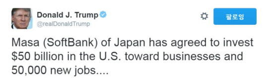 하지만 트럼프는 구체적인 투자 내용과 투자 시기에 대해서는 밝히지 않았다.