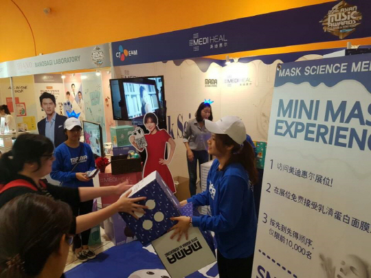 글로벌 마스크팩 브랜드 메디힐이 2일 홍콩에서 개최된 아시아 최대 음악 시상식 '2016 엠넷 아시안 뮤직 어워즈(이하 2016 MAMA)'에 공식 협찬사로 참여해 방문객들에게 메디힐 마스크팩 2만 장과 2016 MAMA 티켓 프로모션을 진행했다.
