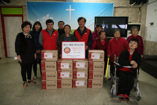 KT 노·사는 김장 김치가 떨어지는 봄철에도 김치를 담가 전달하는 등 '김치 나눔'을 통한 사회 공헌 활동을 펼치고 있다.