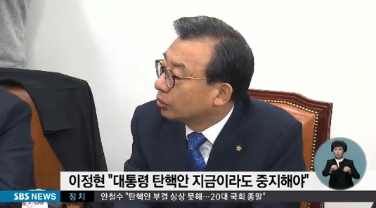 이정현 새누리당 대표가 박근혜 대통령 탄핵소추안 부결을 주장했다.