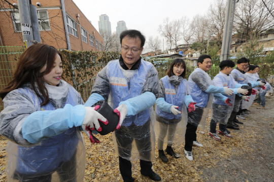 지난 7일에는 백복인 KT&G 사장이 서울 강남구 개포동 달터마을에서 KT&G의 기업문화 혁신을 위한 상설 기구 '상상실현위원회' 소속 직원들과 함께 연탄과 난방텐트 등 월동용품 배달 봉사를 펼치며 나눔의 의미를 더했다.
