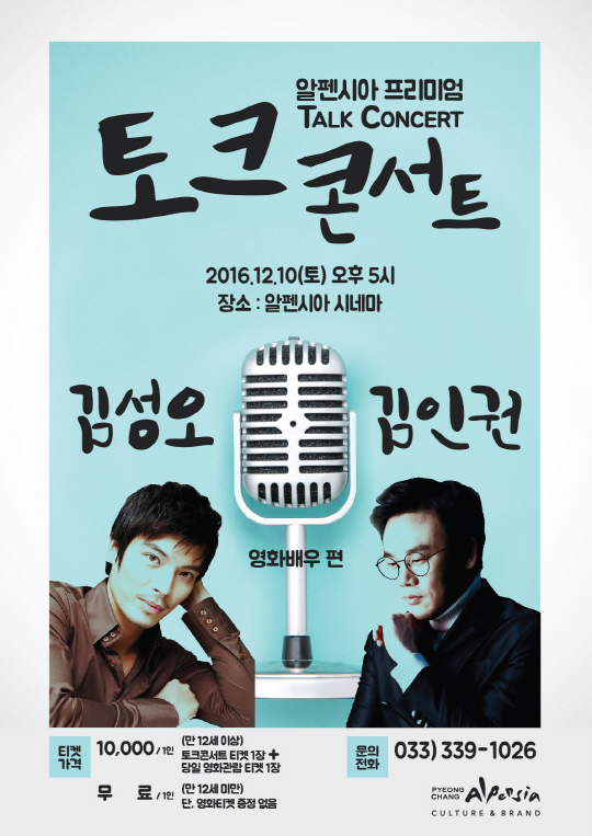 한편 '알펜시아 프리미엄 토크 콘서트'는 이번 영화배우편을 시작으로, 매달 다양한 분야의 사람들과 함께 할 예정이다.