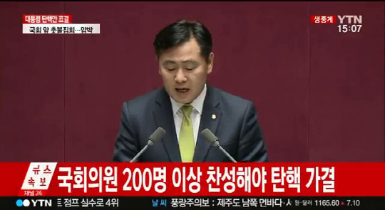 김관영 국민의당 원내수석부대표가 9일 표결에 부쳐지는 박근혜 대통령 탄핵소추안에 대한 제안설명을 맡았다.
