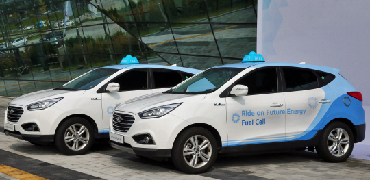 현대자동차의 투싼ix 수소전기차를 활용한 택시 시범사업이 국내에서 처음 실시된다.