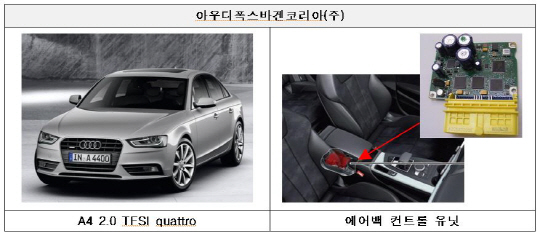 리콜대상은 2008년 8월 14일부터 2009년 8월 25일까지 제작된 아우디 A4 2.0 TFSI 콰트로 등 5개 차종 승용자동차 1987대다.