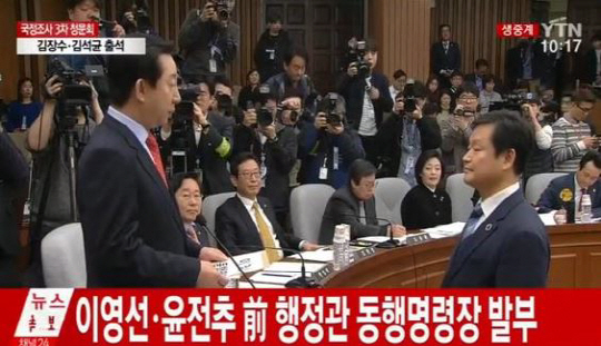 이영선, 윤전추 청와대 행정관에 대한 국회의 동행명령 집행이 불발됐다. 14일 국회에서 열린 '최순실 국정농단' 국정조사 제3차 청문회 직전 이들에 대한 동행명령장이 발부됐다. 김성태 국조특위원장은 이날 오후 "국회 경위직원 4명이 동행명령장을 집행하기 위해 청와대 면회실을 가서 접견신청을 했지만 구내전화를 받지 않고 연락이 되지 않았다"며 "두 행정관은 만나지도 못하고 집행도 못한 채 면회실에서 접견을 시도하는 상태"라고 밝혔다.
