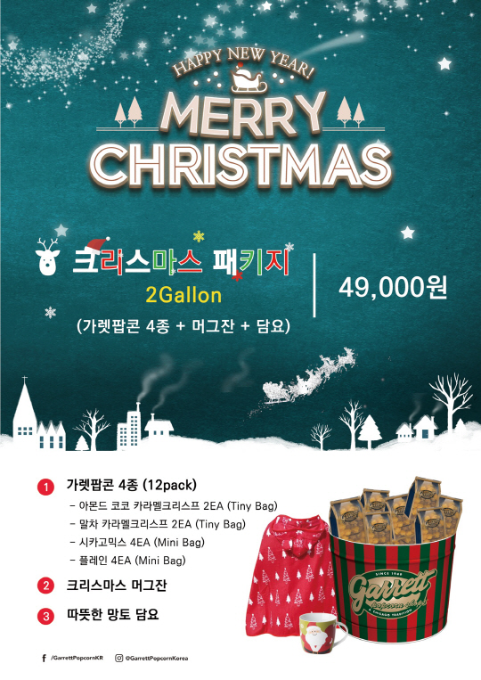 67년 전통의 시카고 수제 팝콘 브랜드 가렛팝콘샵이 크리스마스와 연말을 맞아 '2016 가렛 크리스마스 패키지'를 출시한다.