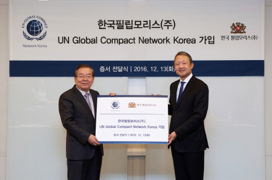 이날 가입증서 전달식에서 정일우 한국필립모리스 대표이사는 "글로벌 본사가 UNGC 10대 원칙 이행을 밝힌 것처럼 한국필립모리스도 이를 기업 경영에 반영, 사회적 책임과 역할을 더욱 강화하고자 한다"며 "앞으로도 꾸준한 사회공헌 활동을 통해 기업과 사회의 지속 가능한 발전에 기여하기 위해 적극 동참하겠다"고 밝혔다.
