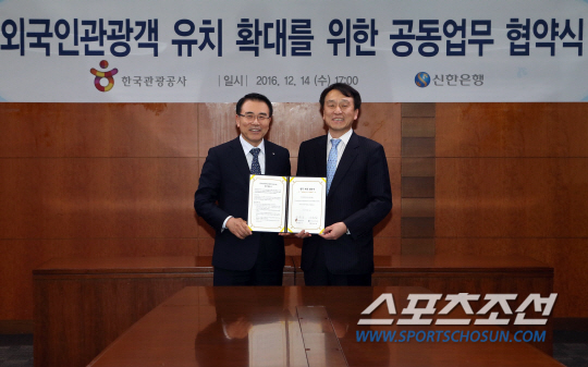 신한은행은 지난 14일 본점에서 한국관광공사와 '외국인 관광객 유치확대 및 국내 관광 편의 서비스 제공'을 위한 업무협약을 체결했다고 15일 밝혔다.