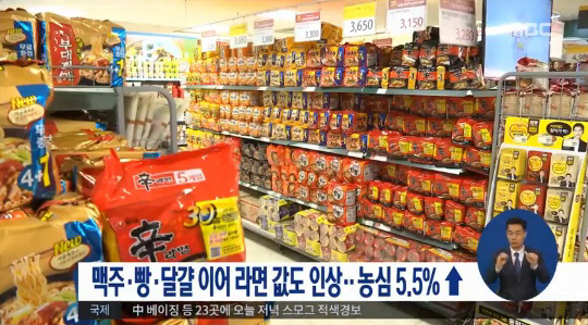 맥주, 빵, 달걀 가격이 오른 데 이어 대표적인 서민식품인 라면 가격까지 뛰어오르면서 서민들 생활 물가에 비상이 걸렸다.