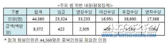 피해 근로자 수 4만4360명은 각 위반사항에 중복된 인원을 뺀 숫자로 각각의 위법을 격은 사람의 숫자를 합하면 1000만명이 넘는다. 근로자 한 사람이 몇 가지씩의 위법을 중복으로 겪으며 피해를 본 셈이다.