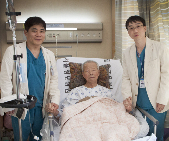 서울성모병원은 심장원스탑클리닉 장기육(순환기내과), 김환욱(흉부외과) 교수팀이 100세에 가까운 초고령 환자를 대상으로 고난도 심장수술을 성공했다고 밝혔다.