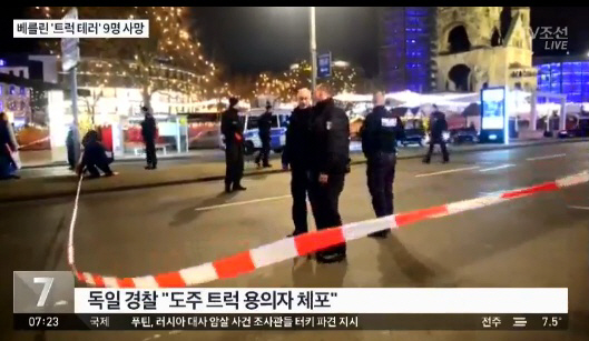 독일 베를린 시내에서 대형트럭 한 대가 19일(현지시간) 크리스마스 쇼핑을 위해 많은 사람이 모인 시장을 덮쳐 최소 9명이 숨지고 50명이 다쳤다.