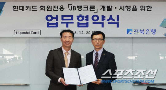 양사는 현대카드 우수회원 전용 상품을 개발하기로 합의하고, 지난 20일 서울시 영등포구 소재 JB금융지주 본사에서 업무협약식을 가졌다.