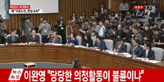 "야당이 동료 여당의원에게 자격을 논하는 건 결례다. 오늘 출석증인에 대해 집중하면서 우리 위원회의 신뢰 회복 위해 참고인들과 함께 위증 교사 허위주장을 밝혀서 정치적 공작 밝혀야 한다"고 말했다. <스포츠조선닷컴>