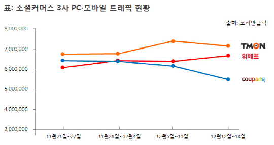 티몬은 최근 1달(4주)간 PC와 모바일 통합 순 방문자수에서 쿠팡을 제치고 소셜커머스 업계 1위를 차지했다고 22일 밝혔다.