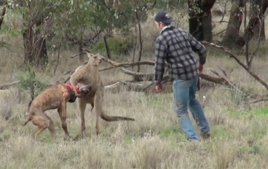 사냥개를 괴롭히다 개 주인에게 혼쭐이 나는 캥거루의 모습을 담은 영상이 화제가 되고 있다.