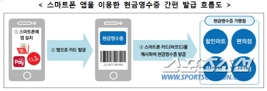 국세청은 27일 소비자가 이동통신 3사의 전자지갑 등 스마트폰 앱을 이용해 현금영수증을 간편하게 발급받을 수 있는 서비스를 개시했다고 밝혔다.