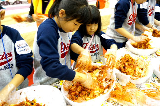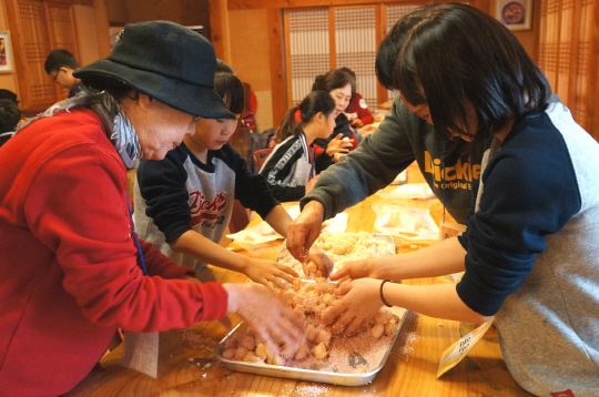 일행의 첫 만남은 다소 어색하기도 했다. 하지만 김치축제장에서 배추를 빨간 양념으로 버무리며 어느새 어르신과 아이들은 한 가족처럼 어우러져 있었다. 김치축제장에서는 우리나라 김장문화에 대해 이해하는 소중한 기회도 가질 수 있었다. 축제장에서는 다양한 놀이체험도 할 수 있었다. 아이들이 즐겁게 뛰어놀고, 어르신들도 옛 추억을 떠올릴 수 있는 활쏘기 체험, 투호놀이, 팽이치기 등 신나는 만속놀이 마당이 펼쳐졌다.