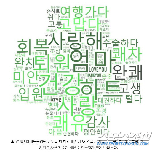 2016년 한 해 동안 이대목동병원을 찾은 환자와 내원객들이 가장 많이 공유한 희망 메시지 키워드는 '엄마'였다.