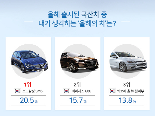 아울러 SM6는 한국자동차전문기자협회(회장 조창현)가 선정한 '2017 올해의 차(Car Of The Year)'에 뽑히기도 했다.