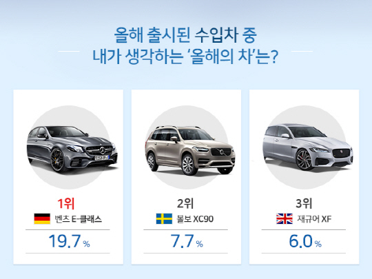 SK엔카닷컴은 소비자를 대상으로 한 설문조사에서 르노삼성 SM6와 벤츠 E-클래스가 각각 '올해의 차' 국산차·수입차 부문에 선정됐다고 밝혔다.