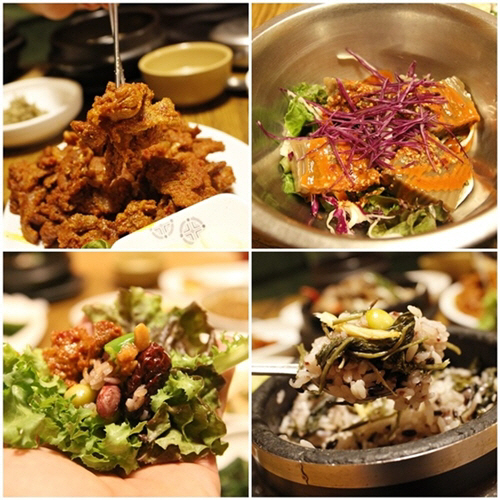 주메뉴로 석쇠돼지불고기쌈밥, 소불고기(뚝배기) 쌈밥, 영양돌솥밥(석쇠불고기 및 소불고기)을 삼고 있으며, 쌈밥 주문 시 생선구이와 고기, 된장찌개, 마늘무침 등 20여 가지의 반찬이 신선한 야채와 함께 제공된다. 사이드 메뉴는 해물파전, 동동주, 도토리묵, 모듬전병 등으로 구성된다.
