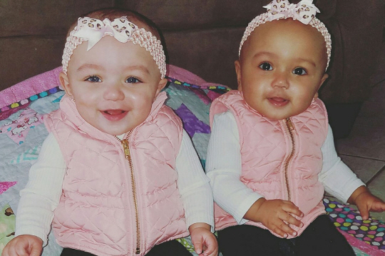 미국 일리노이주 퀸시에서 '100만분의 1'의 확률을 뚫고 태어난 흑백 쌍둥이 자매가 화제다.