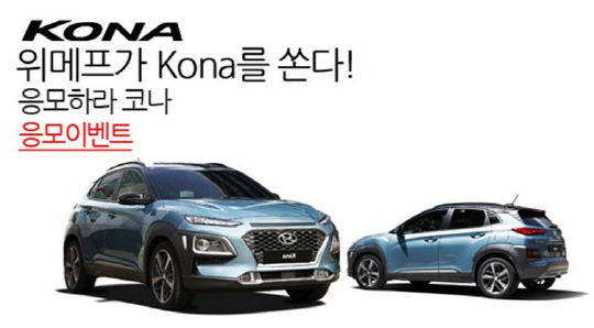 위메프가 현대자동차 '코나' 경품 프로모션을 실시한다.