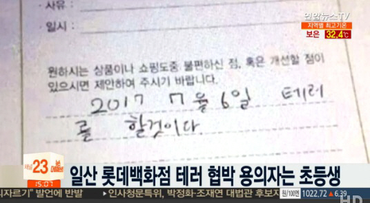 경기도 고양시 일산동구 롯데백화점 일산점에서 '백화점을 폭파하겠다'는 협박성 엽서가 발견돼 경찰이 수사를 벌인 결과 용의자는 초등학생인 것으로 확인됐다.