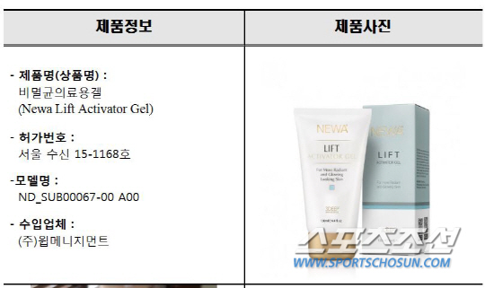 윕메니지먼트가 수입 및 판매한 비멸균의료용겔 'Newa Lift Activator Gel'(모델명: ND_SUB00067-00 A00)의 유통 및 판매를 금지하고 회수를 명령했다고 밝혔다.