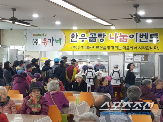 곰탕 프랜차이즈인 '유가네 한우곰탕'이 지난 1월 30일 서울 관악구 관악노인종합복지관에서 어르신들을 위한 점심 나눔 이벤트를 가졌다.
