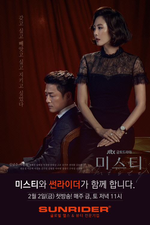 글로벌 헬스 앤 뷰티 브랜드 썬라이더코리아가 JTBC 금토 드라마 '미스티'에 자사 제품을 공식 협찬한다고 밝혔다.