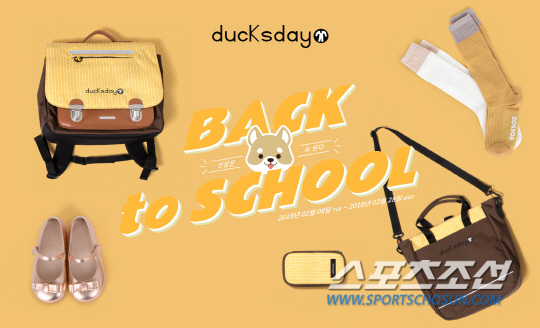 먼저 2018년 봄, 토박스코리아가 정식 론칭한 '덕스데이(DUCKSDAY)'는 'We love fashion, We love Children More'을 모토로 벨기에 특유의 감성 디자인과 경쾌한 패턴이 돋보이는 책가방 브랜드로 덕스데이 백팩과 신주머니로 구성된 신학기 세트 구매시 레인커버와 필통을 증정한다. 또한 합리적인 소비자들을 위해 백팩, 신주머니, 보조가방 등을 단품으로도 구매할 수 있으며 백팩과 신주머니 구매 고객에게 필통과 레인커버를 사은품으로 증정한다.