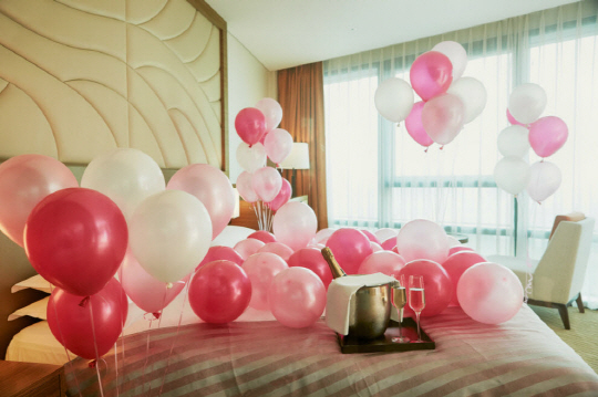 누구라도 꿈꿔봤을 분홍빛 풍선 가득한 호텔에서의 하루. 오랫동안 관계를 지속해 온 커플에게 풍성한 선물은 신선함을 가져다 줄 수 있다. 쉐라톤 서울 디큐브시티 호텔의 '러브 인 더 발렌타인 패키지'라면 가능하다. 객실 안을 가득 메우는 색색의 풍선 데코레이션과 달콤한 초콜릿은 물론, 연인과 함께하는 낭만적인 밤을 위해 향기롭고도 알록달록한 러쉬의 배스 밤도 함께 패키지로 구성해 발렌타인데이에 떠올릴 수 있는 다양한 이벤트를 준비했다. '러브 인 더 발렌타인 패키지'는 오는 14일까지 이용 가능하다.