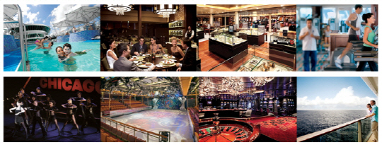 크루즈 여행의 가장 큰 매력은 선사의 다채로운 선내 프로그램과 시설을 여행기간 동안 언제든지 이용이 가능하다는 점이다. 14만톤 급의 보이저 오브더 씨(Voyager or the Seas)호는 스파, 수영장, 공연장, 레스토랑 등 다양한 편의시설과 엔터테인먼트 시설을 두루 갖추고 있어 편안함은 물론 색다른 재미도 함께 선사한다.