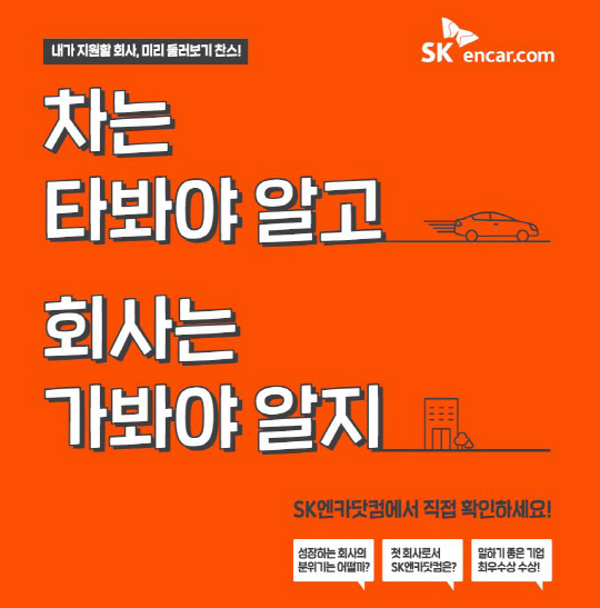 중고차 매매 플랫폼 SK엔카닷컴은 취업준비생들에게 정확하고 풍부한 채용정보를 제공하기 위해 전국 주요 대학생을 대상으로 SK엔카 투어 이벤트를 진행한다고 12일 밝혔다.