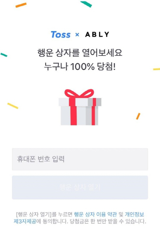 금융앱 토스(toss)가 '꽝 없는' 행운상자 이벤트로 관심을 끌고 있다.