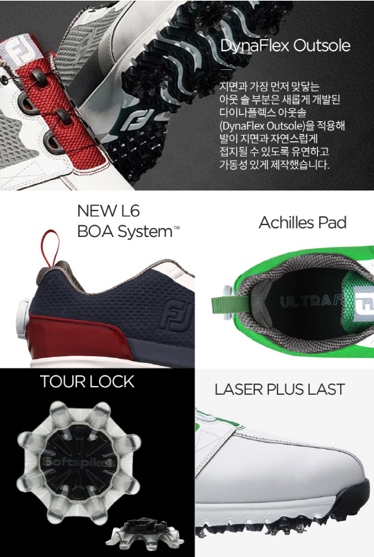또한 울트라핏에 장착된 보아 클로저 시스템 'L6'는 다이얼을 돌리는 방식으로 발을 움켜쥐듯 잡아주며 발모양에 따라 자유자재로 피팅 할 수 있도록 도와준다. 신발 안쪽 미드솔은 FTF 3.0 쿠셔닝을 적용해 타 스타일에 비해 향상된 쿠셔닝과 착용감으로 라운딩 동안 피로감을 덜어준다.
