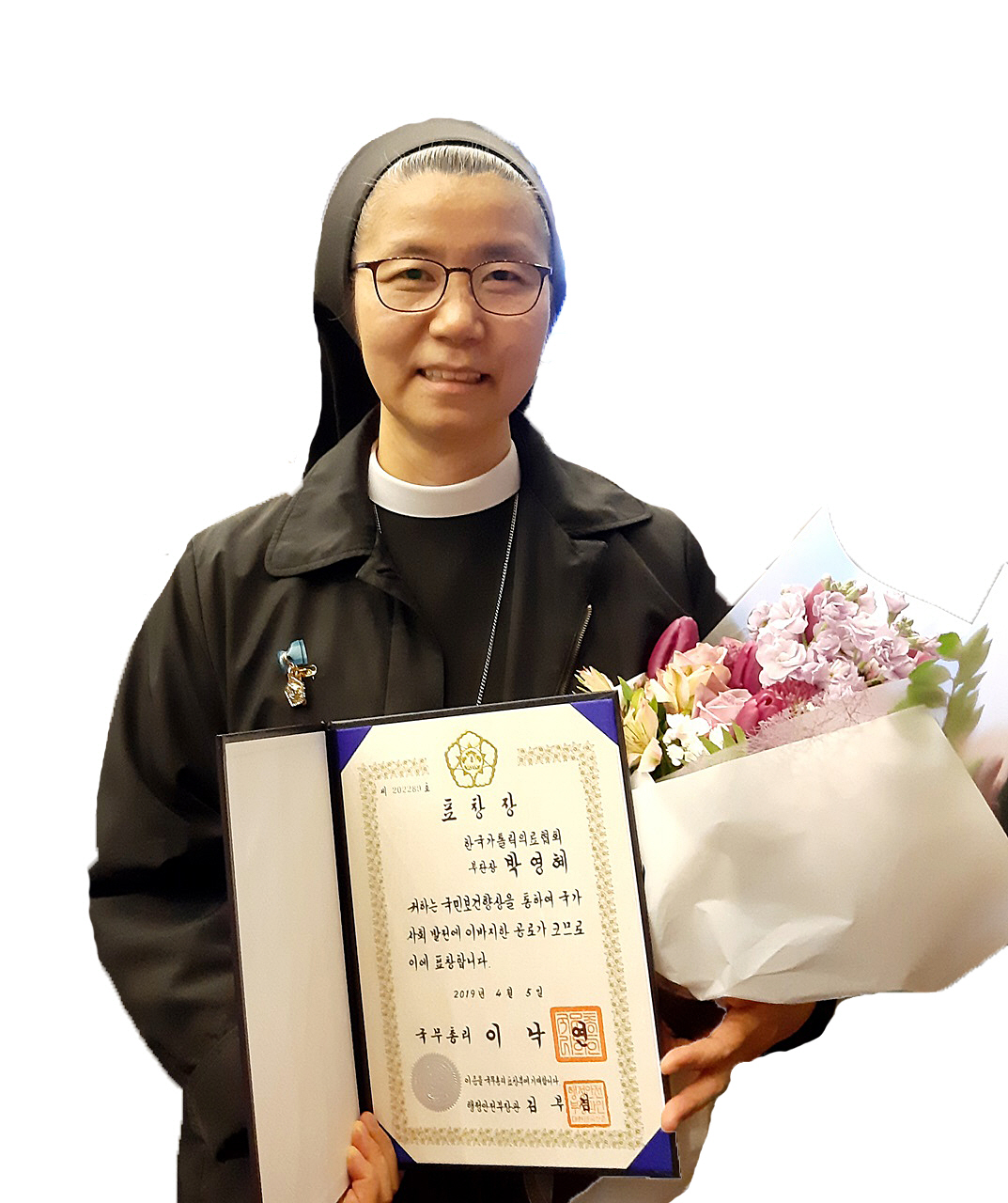 가톨릭대학교 서울성모병원 가정간호팀장 박영혜 수녀가 지난 5일 대한상공회의소 국제회의장에서 개최된 '제47회 보건의 날' 기념행사에서 국무총리상을 수상했다.