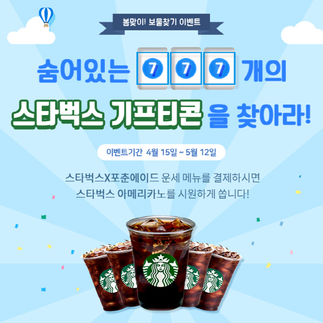 결제 고객 중, 선착순 777명에게 스타벅스 아메리카노 기프티콘을 지급할 예정으로, 이벤트 기간내 중복 당첨도 가능하다. 당첨자는 오는 5월 15일 모바일 상품권을 받을 수 있다.