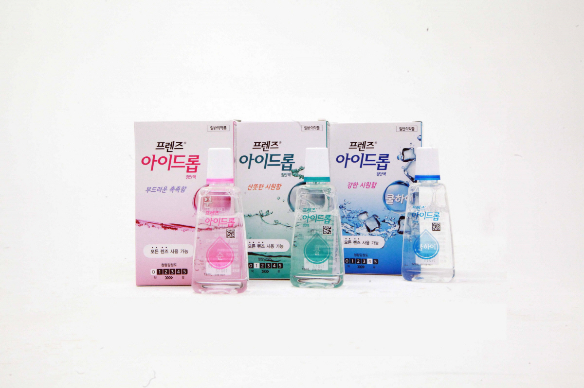 '프렌즈 아이드롭'은 염화나트륨, 염화칼륨, 포도당 등을 통해 눈에 영양을 공급해 주고 멘톨 성분이 눈을 상쾌하게 해주는 인공눈물 제품이다.