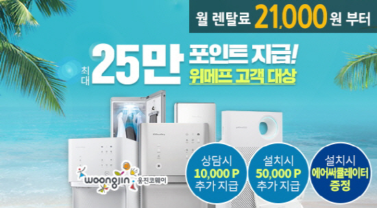 코웨이 온라인 파트너사 ㈜렌탈콕은 금일(3일) 위메프를 통해 코웨이 얼음 정수기를 특별한 가격에 렌탈 할 수 있는 특가 이벤트를 선보인다.